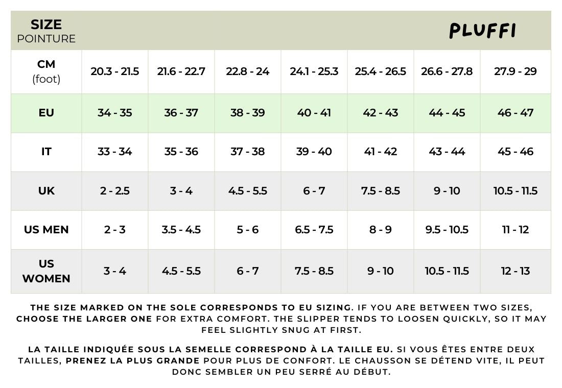 Nos chaussons taillent correctement. Nous vous recommandons de choisir votre pointure habituelle.
